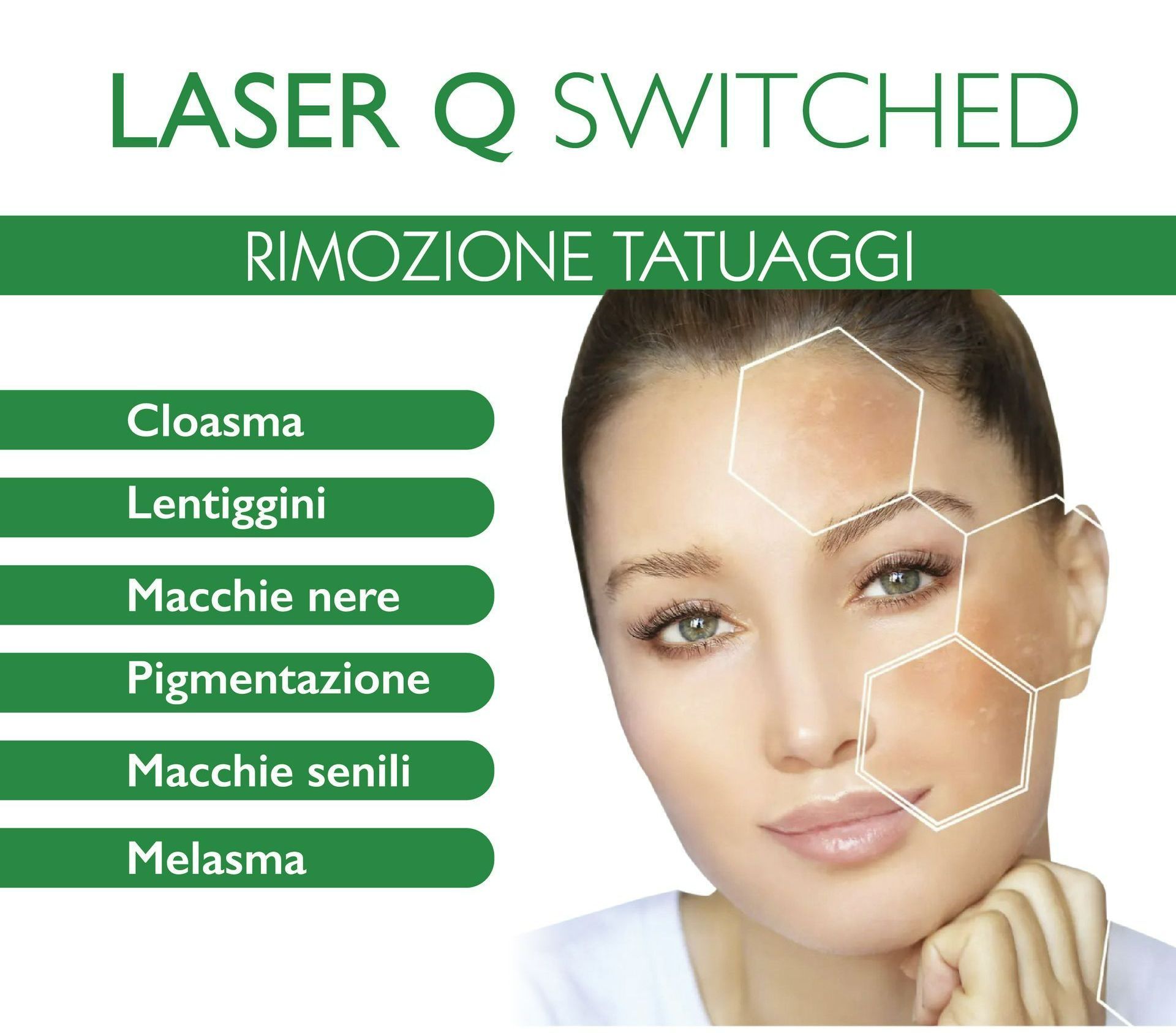Tecnologia ultrapulsata per la rimozione di tatuaggi, eliminazone delle discromie come macchie senili, lentiggini, cloasma e melasma.