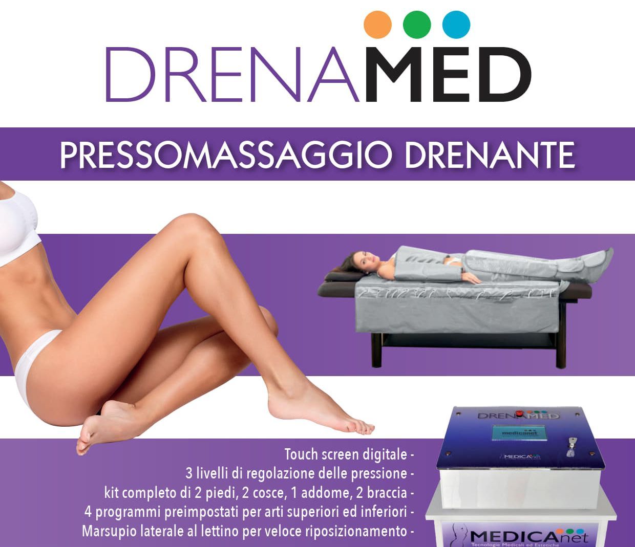 Drenamed è un sistema avanzato progettato per favorire il drenaggio dei liquidi e riattivare la microcircolazione, contribuendo a un miglioramento della tonificazione dei tessuti. Grazie alla sua azione mirata, aiuta a rafforzare il sistema immunitario, ridurre infiammazioni e tossine, e ottimizzare il flusso della circolazione linfatica, favorendo il benessere generale dell'organismo.